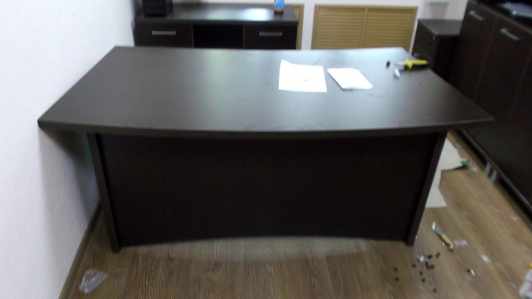 Одним из самых стильных гарнитуров мебели является «First», который украсит кабинет руководителя: менеджера или же директора. Своеобразием дизайна наборов мебели «First» является потрясающая комбинация точности линий и присущей современному стилю неординарности. И также стоит отметить то, что мебель для руководителя из этого гарнитура имеет тёмно-каштановый цвет, который как на фотографии, играет дополнительную роль при определённом свете.